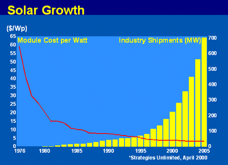 As another example, in "Photovoltaic Technology: The Case for Thin-Film Solar Cells," the authors state "Wafer-based crystalline silicon solar modules dominate in terms of production, but amorphous silicon solar cells have the potential to undercut costs owing, for example, to the roll-to-roll production possibilities for modules. Recent developments suggest that thin-film crystalline silicon (especially microcrystalline silicon) is becoming a prime candidate for future photovoltaics. [A. Shah, P. Torres, R. Tscharner, N. Wyrsch, & H. Keppner, Science Magazine, July 30, 1999. Abstract is free to registered users, full article is available online by subscription.]